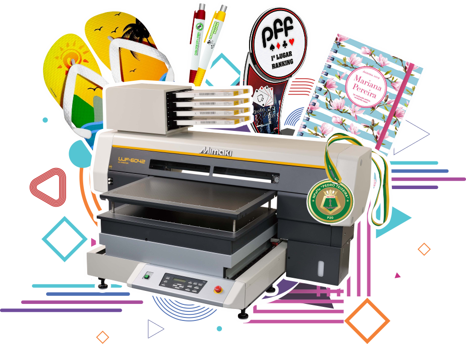 Impressão digital UV possibilita a impressão em diversos tipos de materiais flexíveis e rígidos, utilizado principalmente para impressão em brindes em geral;